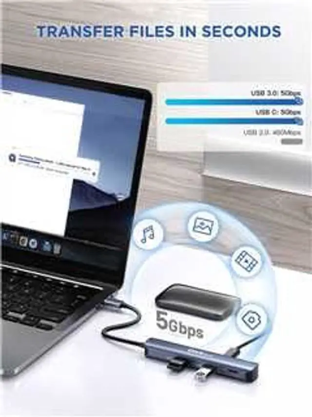 PD Pass-Through Charging: Our USB-C multiport adapter provides 100W power delivery to your device, allowing for full-speed charging at up to 85W. Less time to await, more time to play. ^^ Transfer Files in