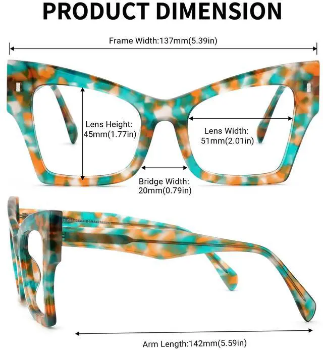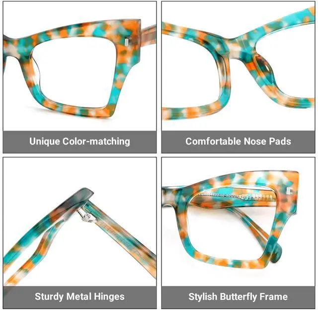 Exquisite butterfly glasses, let you fall in love with it at first sight. ^^ Unique color matching, wear this pair of eyeglasses to bring you more praise. ^^ Stylish eyeglass frames provide more inspiration for your lothing pairing. ^^ Blue light blocking glasses can effectively block blue light and UV403, which is very suitable for people who often work in front of the screen or play games.