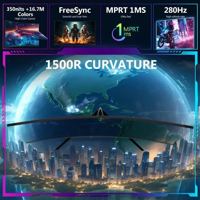 Curved Gaming Monitor: 1500R curved monitor proved to add an immersive touch while gaming or watching movies, helping to fill our peripheral vision, enlarging the field of view to a greater extend. The curved monitor provides the maximum immersion, fully engages your life in every aspects. ^^ Powerful and