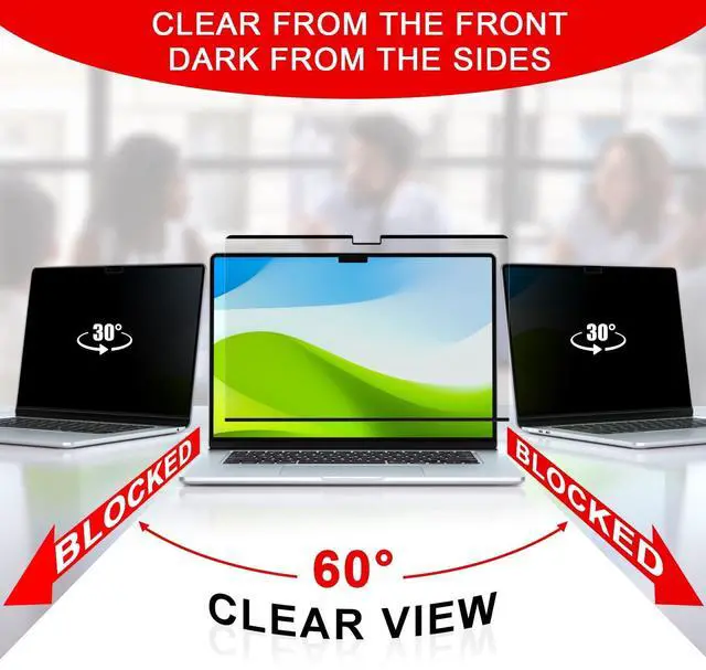 Easily removed and reinstalled when needed, the laptop closes tightly without gaps. ^^ 3. Superior Privacy Protection- MacBook Air 15 inch privacy screen, limits viewing angle to +/- 30 degrees, data is visible only to persons directly in front of the monitor while prying eyes beside you see only nothing. privacy screen Macbook Air 15.3 inch, to protect your sensitive information, your passwords, personal content, etc., Prevent information from being leaked. ^^ 4. Anti-Glare & Scratch Resistant- MacBook Air 15.3 inch Privacy Screen, adopts advanced multi-layered film filter blacks out your screen when viewing from the side, while maintaining a crystal clear screen straight-on.