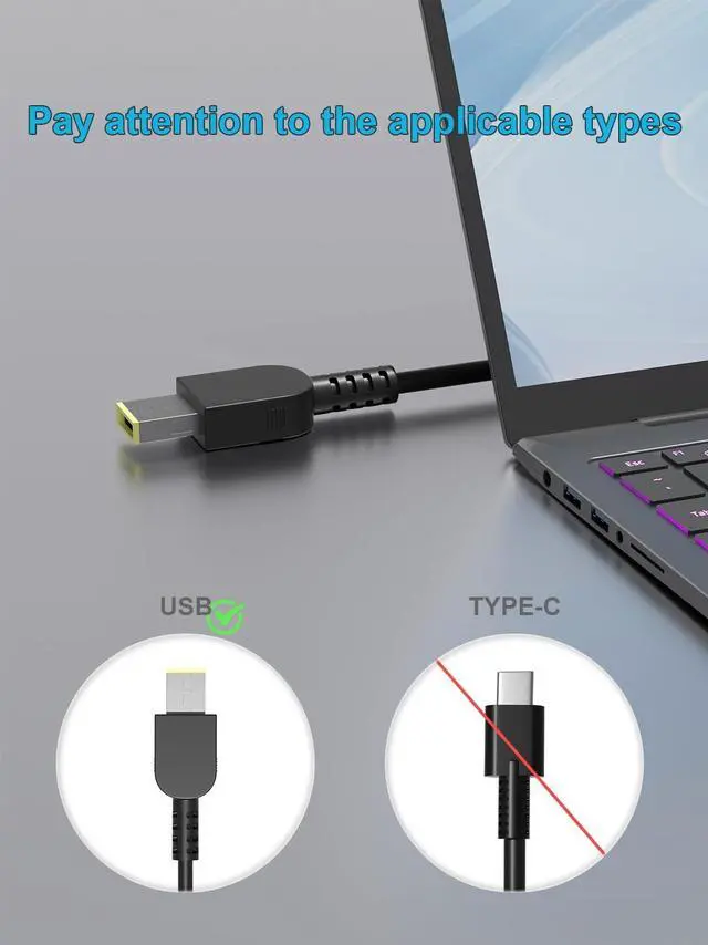 Power Jack Connector Type: Square Yellow Slim Tip. (It is not fit for laptops devices requiring more than 170W) ^^ Stable Compatibility; Experience faster, more reliable charging with this Portable charger. Lightweight and compact size makes it easy to pack for business trips, vacations, or daily use at the office. Durable Construction and Made with heat-resistant materials for extended durability. The built-in chip automatically adjusts power based on your devices temperature and battery status. Less heat, safer charging, and a battery that lasts longer ^^