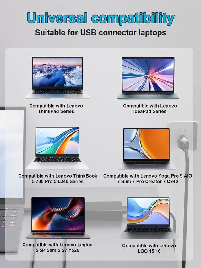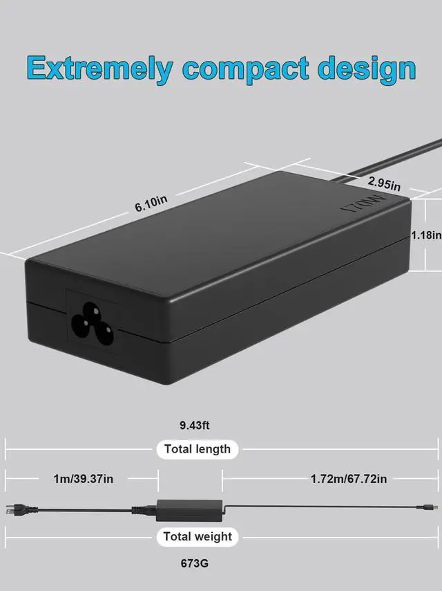 Output Voltage: 170W 20V/ 8.5A, (also Works for 150W 135W 90W 65W Wattage Devices).