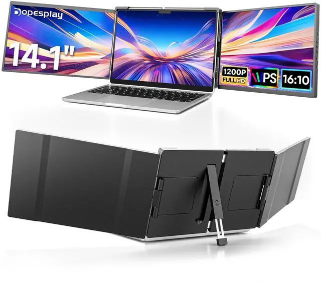 For USB-C-limited gadgets: Connect left monitor via HDMI+USB-C, right via included USB-A/USB-Cflexible connection options for all setups. ^^ Enhance Your Productivity Dopesplay Laptop Screen Extender offers 4 Modes (Extended/Mirrored/Presentation/Vertical) to break single-screen limits. Boost efficiency by 200% with multi-window workflowsideal for coding, video calls, trading, gaming. This dual screen laptop setup turns any space into a productivity hub: work smarter, code faster, multitask seamless. Expand your workspace anywhereno more tab-switching chaos! ^^ Outstanding Visual Quality 14.1 -inch