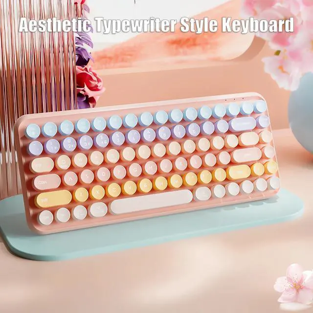 [Tri-Mode Connection] - Powerful 3-mode connection supports Wireless 2.4GH z/Bluetooth 5.0 /USB-C Wired. You can connect up to 2 bluetooth devices, 1 wireless 2.4GH z device and 1 wired device. Connect and switch devices easily with Fn+1~4. Compatible with Win, MacOS, IOS and Android systems. Switch the system by pressing Fn+Q/W/E/R according to the connected device. Support PC, Mac, smartphone, ipad and tablet. ^^ [Retro Aesthetic Typewriter Style Keyboard] - The typewriter keyboard is a fusion of retro style and modern design. Cute colorful round keycaps and advanced connection technology make typing more comfortable and enjoyable.