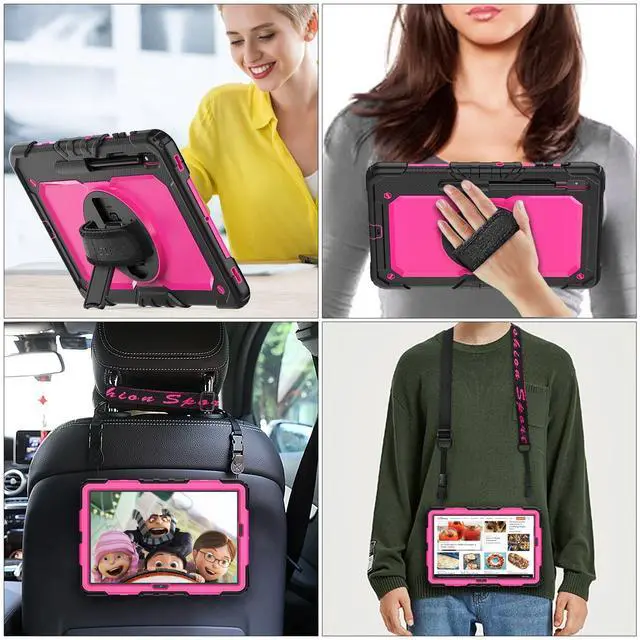 (Please kindly note: Pencil Not Included) ^^ Soft Hand Strap & Portable Shoulder Strap & Rotating Stand: Provide the securest protection and more convenience when you play or work with tablet; Hang it anywhere for your better entertainment, make your hands-free; 360 Degree rotating Kickstand provides multi-angle viewing, with soft handle strap, easier to use your tablet in your outdoor travelling, working, gaming ^^