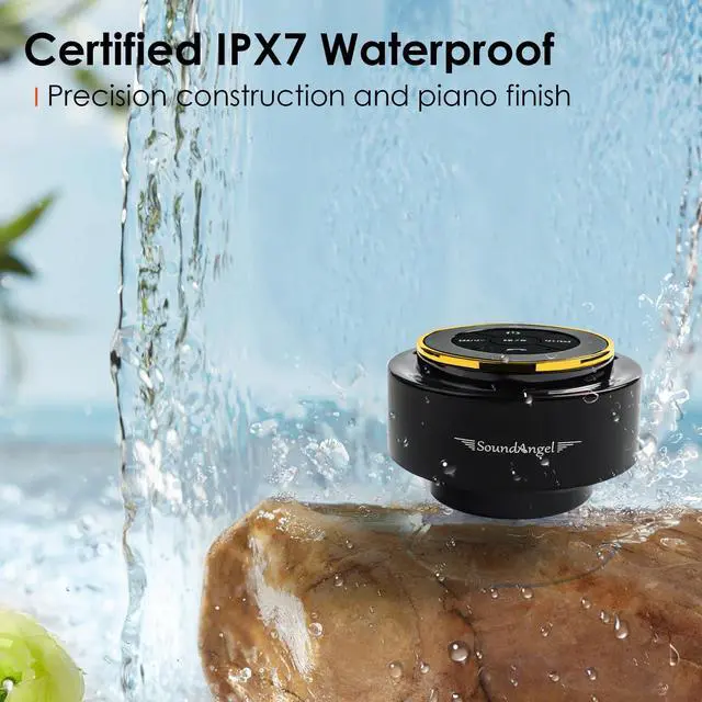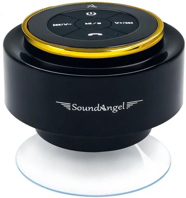 Best Popular Shower speaker- A Premium Gift SoundAngel Mate has a small and compact size, classic and exquisite shape, comfortable and excellent sound quality, and amazing waterproof performance, and with CE, FCC, ROHS and Waterproof certifications, it's guaranteed to last. ^^ Certified Waterproof&Floatingthis shower Bluetooth speaker resists to water, rain and splash, even can float on your bathtub or pool, it could be fully immersed up to 1 meter for about 30 minutes underwater, perfect for bathroom shower, pool, kayaking, boating etc. ^^ Powerful Suction cup providedThe waterproof speaker comes with suction cups, which can be well attached to glass or tiles in bathrooms and swimming pools, as well as smooth areas on boats and kayaks, and it's a good choice to stick it in the kitchen or Car! ^^ Loud Crystal Sound & Bass 5Watts of large power delivers surprisingly loud room filling volume from the precision neodymium driver and proprietary bass radiator; distortion-free stereo sound even at max volume, Powerful and louder than other similar-sized waterproof shower speakers.