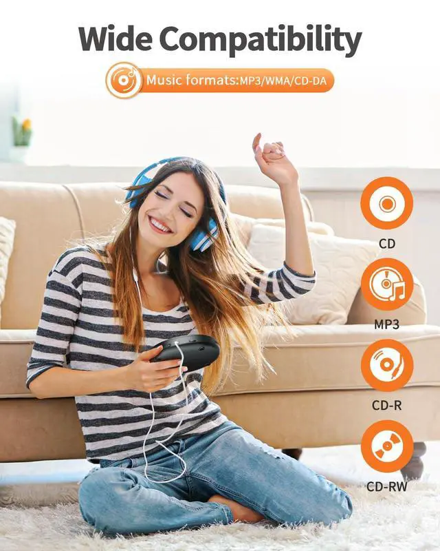 ^^ MULTIFORMAT COMPATIBILITY & TF CARD SUPPORT Widely supports CD, CD-R, CD-RW, MP3, HDCD, WMA formats. Built-in TF card slot lets you enjoy audiobooks, language lessons, or music files without internet access. Multiple EQ options and playback modes (repeat, shuffle) provide personalized listening experiences for all ages. ^^ ANTI-SKIP PROTECTION & A-B REPEAT Equipped with anti-skip and anti-shock technology, ensuring stable playback even during driving, running, or other sports activities. A-B repeat function lets you loop specific tracks, ideal for language learners practicing pronunciation or kids reviewing educational content; fast forward/backward buttons for easy track navigation.