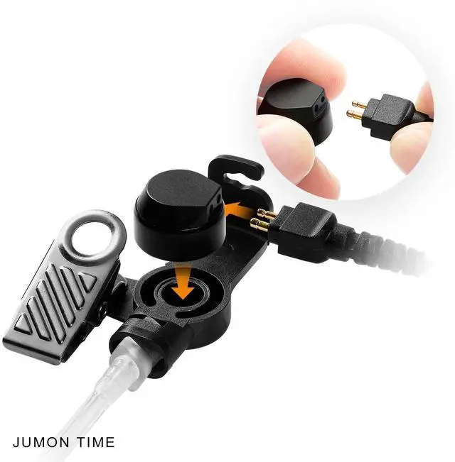 Surveillance Earpiece/Headset KitFeatures: -2-Wire Surveillance kit with Quick-Disconnect Acoustic Tube-Surgical Grade UV Resistant Acoustic Tube, Comfortable & Durable-The utilization of high-quality speaker and microphone ensures clear sound transmission even in noisy environments. -Rugged PTT/Mic with High Feedback PTT Switch&Stainless Steel Swivel Clothing Clip-Rugged ConnectorDimension Specification: -Dimension of