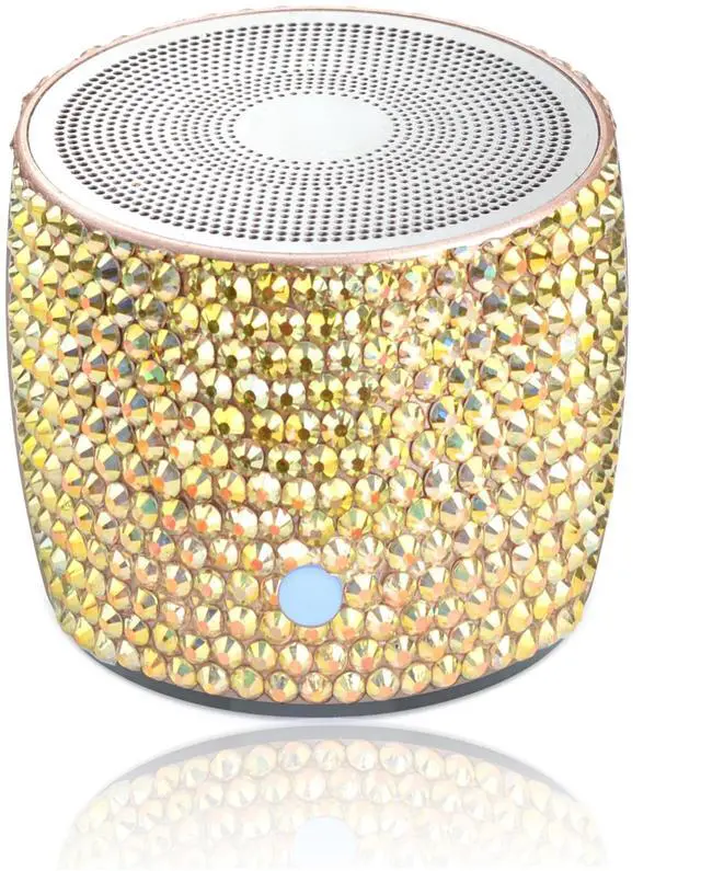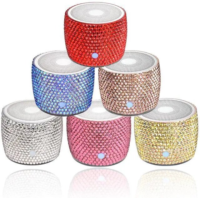 Unique Stunning Design - Hand laid LUXURY AUSTRIAN rhinestone crystals adds sparkle and bling to your space, a bedazzled unique gift. It is not only a high-quality mini wireless speaker, but also a desktop artwork. Also, the various color option and the compact size make it the best choice for home, office or travelling use. ^^ Amazing Bass Loud Sound - The wireless speaker delivers 3W stereo sound, releasing crystal clear sound with bass and room-filling loudness through a high-performance driver and a passive subwoofer. Small, but such powerful Bluetooth speakers.