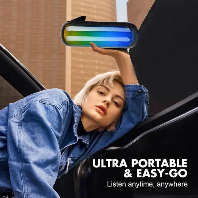 The built-in Type-C fast charging port provides quick and convenient recharging, so your wireless Bluetooth speaker is always ready for home, travel, or outdoor fun. ^^ IPX4 Waterproof & Portable Design-Built to handle splashes, rain, and moisture, this IPX4 waterproof speaker is perfect for the shower, poolside, beach, or camping. The compact, lightweight design makes it easy to carry and enjoy powerful sound anywhere you go. ^^ Great Gift for Everyone-With stunning RGB lights, premium sound, and sleek style, this Bluetooth speaker makes an excellent gift for men, women, teens, and kids.