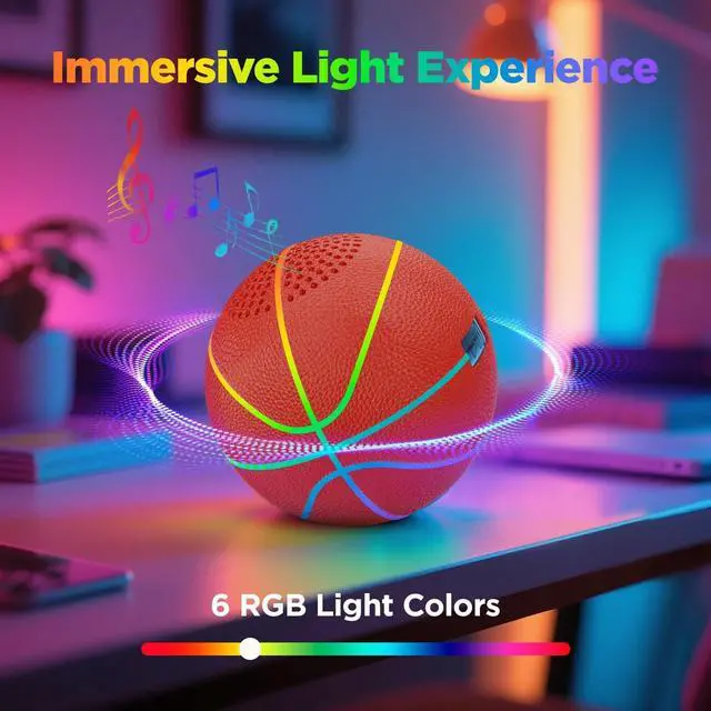 Mini Baseball-Sized DesignThis glow basketball is exclusively baseball-sized, crafted as an exquisite desktop ornament, creative gifting option and stylish decor piece, not for actual basketball play, a unique addition to all sports stuff and basketball stuff collections. ^^ Vivid Glow in the Dark EffectThe light up basketball features high-brightness premium LED beads, delivering stunning glow in dark basketball effects; this glowing basketball stands out as the most eye-catching glow balls in dark spaces, bringing extraordinary visual enjoyment for all scenes. ^^ Built-in Bluetooth SpeakerThis pelota de basketball is integrated with a hidden high-quality Bluetooth Speaker, fusing the trendy charm of glow city basketball with immersive audio fun, ideal for indoor leisure and outdoor activities, a functional basketball stuff with practical sound playback.