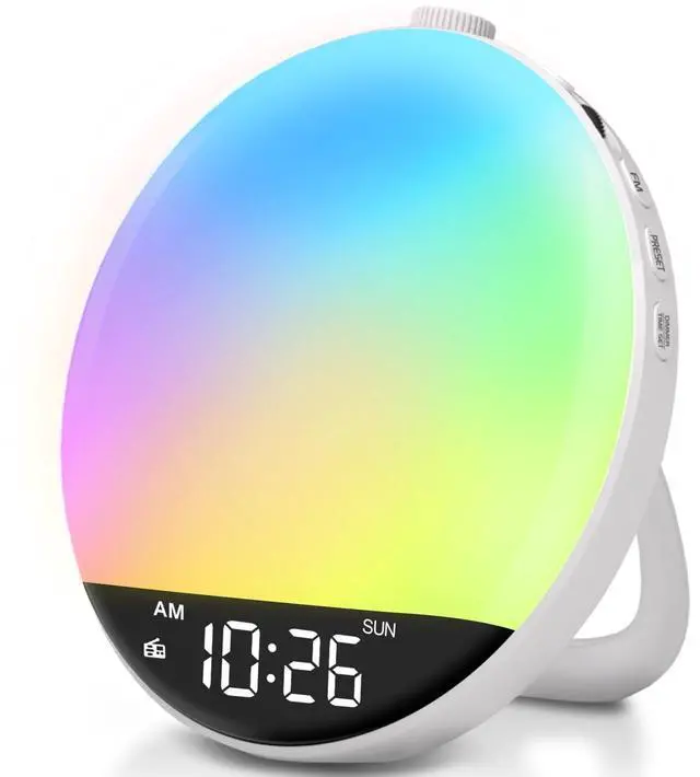 Choose from 8 different alarm tones and 16 levels from whisper to loud volume, waking up surrounded by the nature sound, classic alarm or your favorite radio station. This will be a perfect alarm clock for heavy sleepers adults kids and teens. You can also mute the alarm and waking by the wake up light only. ^^ Dimmable Display and RGB Night Light Dreamsky alarm clock radio comes with 15 color lights and a night light that paints your room with the color you like. 20 levels of light brightness and 5 levels of display brightness could help you get rid of dazzling light.