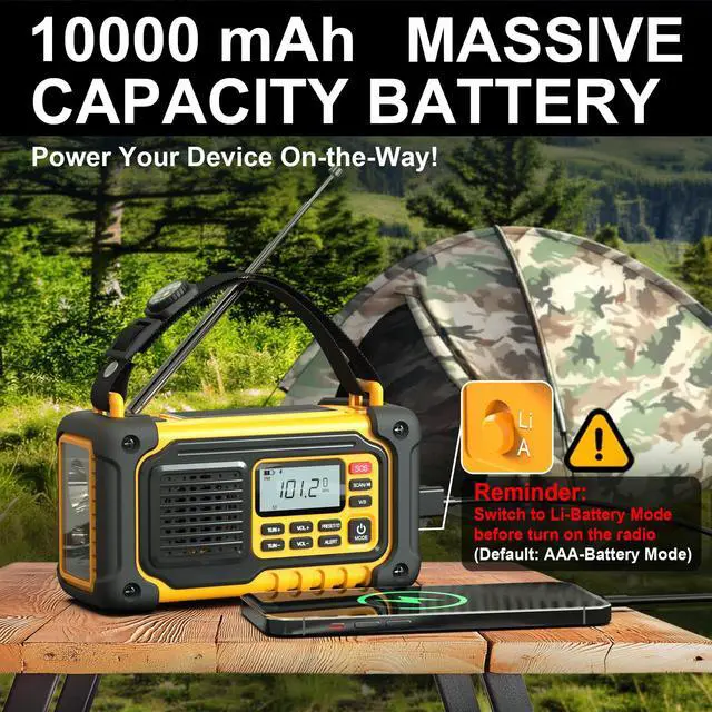 The preium quality 3.5 mm headphone jack, let you enjoy radio shows freely. This emergecy radio is with 2.5W reading lamp which can use handy during emergency power cuts to see a brighty signal in the dark. ^^ 6-WAY CHARGING OPTIONS CRANK RADIO - This built-in 10, 000mAh NOAA Weather Radio with multiple backup charging options is the ideal choice for reliable communication.