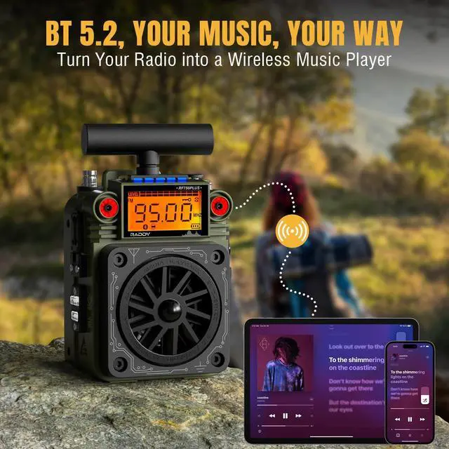 and 3-in-1: Receiver, BT speaker, SD card music player. APP Control. Enhanced AM Reception with an extra T-type antenna. User-friendly features like USB-C charging & headset port, a replaceable lithium battery, and SOS alarm ^^