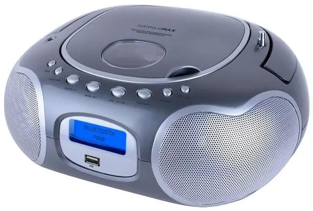 HANNLOMAX HX-309CD Portable CD/MP3 Boombox, AM/FM Radio, Bluetooth, USB Port for MP3 Playback, Aux-in, LCD Display, AC/DC Operated (Grey)