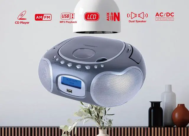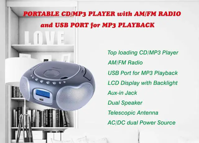 • Portable CD/MP3 player with USB port: Supporting CD/CDR/CDRW/MP3 with outstanding stereo sound quality.Also, Play your favourite MP3 music on a USB flash drive through USB port.