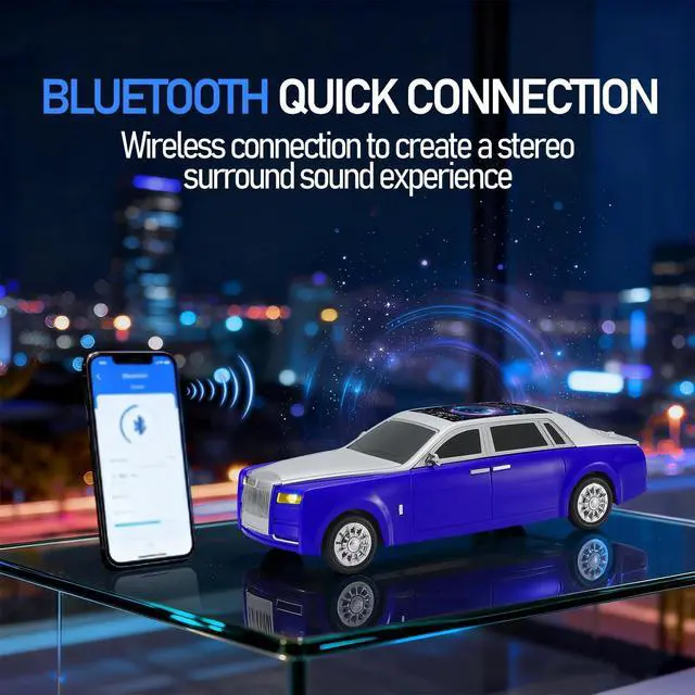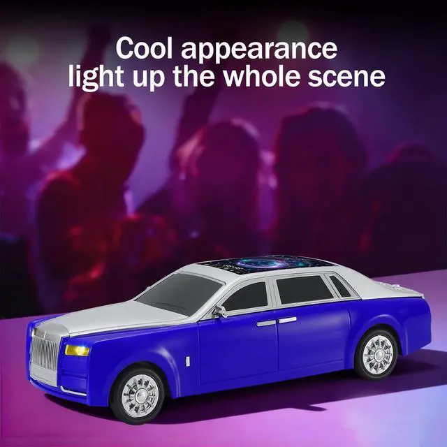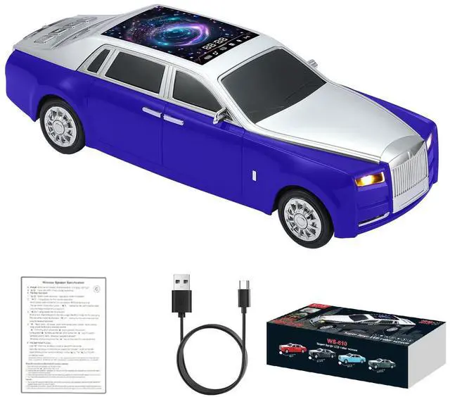 LED starry sky screen Display Panel on Roof A distinctive LED starry sky screen displays colorful visual effects that synchronize with your music, creating a vibrant party mood ^^ Luxury Sedan Replica Design Crafted with sleek contours, chrome-like accents, and movable wheels, this model doubles as a Bluetooth speaker and a desktop collectible ^^ HD Sound & TWS Stereo Pairing Delivers crisp, high-definition sound from dual 20W drivers. Connect two WS-610 units via TWS for immersive stereo performance ^^ Multiple Playback Options Stream via Bluetooth 5.4 or enjoy music through USB, TF card, or built-in FM radio; ideal for both home audio and outdoor use ^^ Hands-Free & Type-C Charging Built-in microphone supports hands-free calls.