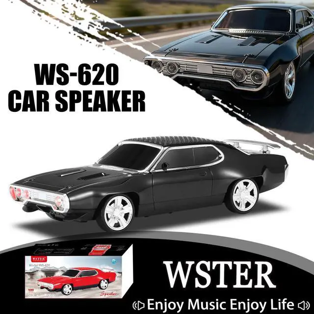 Classic Muscle Car Design Inspired by vintage sports coupes, the WS-620 features smooth lines, a rear spoiler, and chrome accents that enhance its collectible appeal. ^^ High-Quality HD Sound Delivers full-range stereo performance with clean highs, balanced mids, and deep bass in a compact, stylish form. ^^ Bluetooth 5.4 & TWS Pairing Connect wirelessly for fast, stable playback or pair two WS-620 speakers for a rich dual-channel stereo experience. ^^ LED Headlights & Multi-Mode Playback Headlights light up when music plays; supports USB, TF card, and FM radio for versatile entertainment options.