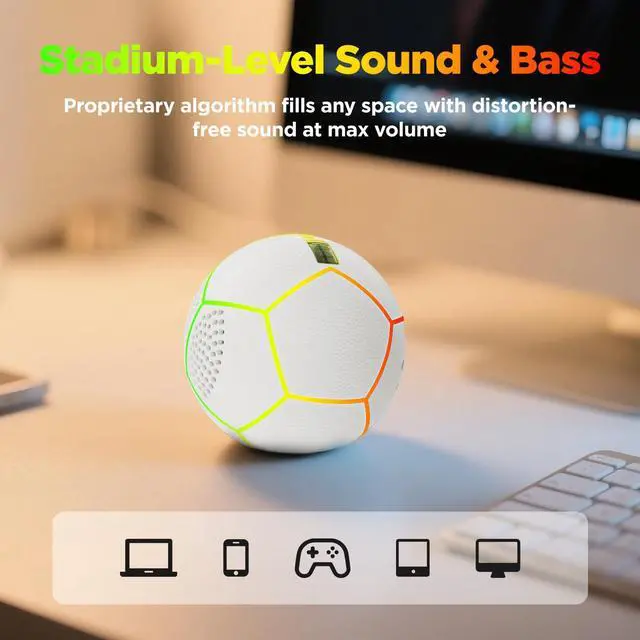 GLOW IN THE DARK SOCCER BALL WITH BLUETOOTH AUDIO JISPOORT light up soccer ball features bright luminous glow effects and built-in Bluetooth speaker, combining sport, music and light in one unique soccer toy. It is the coolest addition to your soccer stuff and soccer accessories. ^^ PREMIUM LEATHER & BASEBALL SIZE Made of soft, durable leather and designed in compact baseball size, this mini soccer ball is easy to grip, hold and play. Perfect for casual play, indoor & outdoor use, and easy to carry anywhere. ^^ PREMIUM SOCCER GIFTS & UNIQUE SOCCER STUFF Looking for premium soccer gifts? This glow in the dark football is an ideal gift for soccer fans, friends and family.