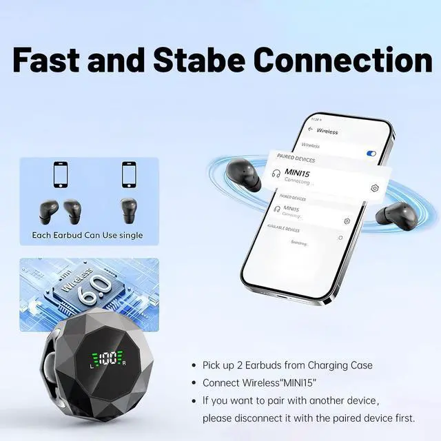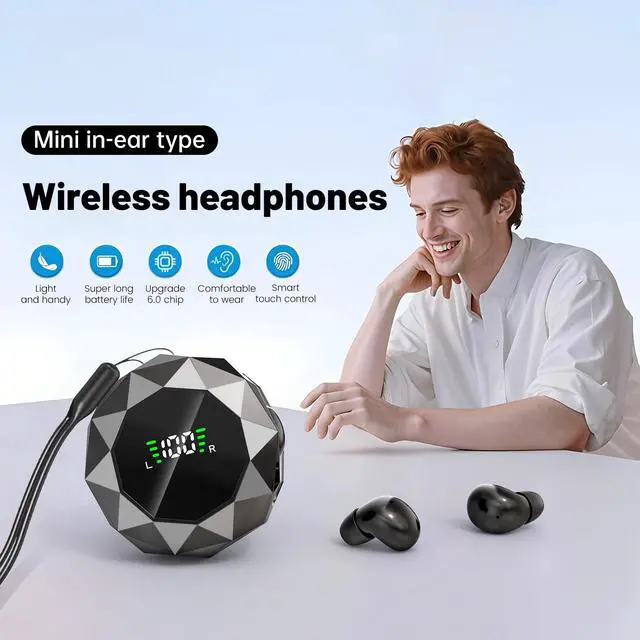 Experience true wireless freedom with these ultra-compact earbuds designed for maximum discretion and comfort. The innovative geometric design houses advanced Bluetooth technology in an incredibly small form factor that sits nearly invisibly in your ear canal. Perfect for those seeking low-profile audio solutions for work or rest, these mini earbuds deliver clear sound while remaining virtually undetectable. The ergonomic shape is specifically engineered for smaller ear canals, ensuring a secure and comfortable fit during extended wear. Each earbud features an easy-to-read digital display showing battery status and connection indicators. Available in both classic white and sleek black finishes, these earbuds combine sophisticated style with practical functionality.