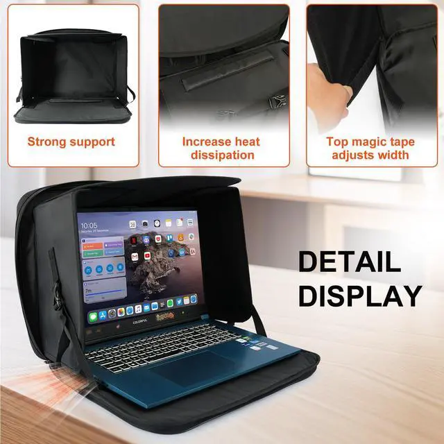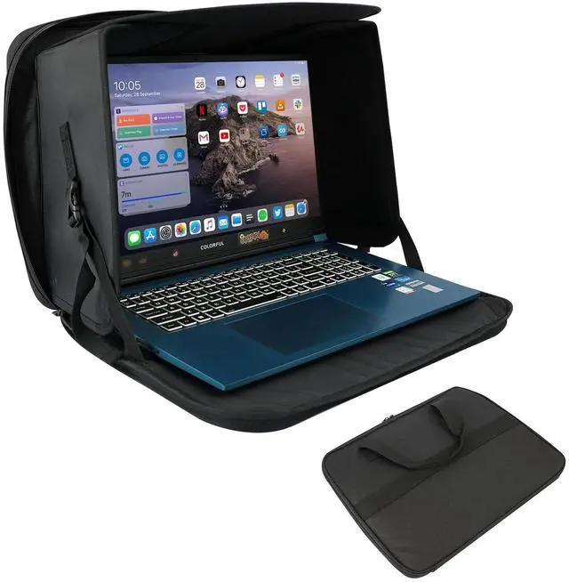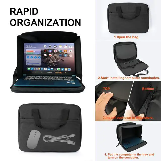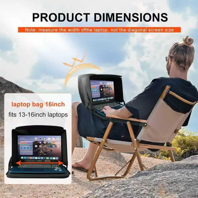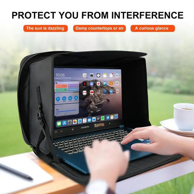Laptop Sun Shade Case is to fit 13" to 16inch laptop bag, block galre and protect privacy and help you work outside againest sun light. with Velcro supported shade that folds flat when not in use. Light weight, durable and perfect for travel, office or beach. Chromebook case for school, protect your laptop from overeheating due to direct sunlight. Tri fold panel support make the laptop easy to dissipate