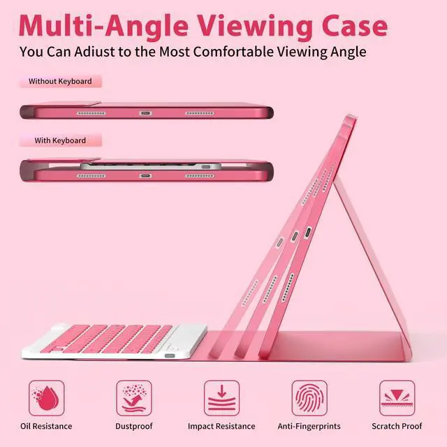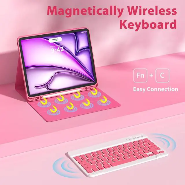 Note: This case keyboard is NOT suitable for the new pro 13 inch M4 2024. ^^ Heat release & for iPads whole body protection: IPads pro 12.9 inch case with keyboard comes with honeycomb grid pattern design is better for heat release and anti-skid. Thoughtful design to effectively extend life of your beloved iPads. Solid keyboard case and wave shock absorbtion give comprehensive protection for your IPads Pro 12.9 Case 6th/5th Generation & for iPads air 13 inch from scratches and damage. ^^ Slim bluetooth wireless keyboard for ipads keyboard: for iPads air 13 inch/for iPads Pro 12.9 inch 6th/5th Generation 2022/2021 keyboard case is ultra-thin, easy to carry, easy to put into a briefcase, handbag or backpack. 12.9 inch ipads pro case with keyboard Detachable bluetooth keyboard combines with our industry-leading keyboard design and adds more spacious scissor-structure keys for a more relaxed and tactile typing experience. ^^ for iPad pro Case Multiple stand angles for comfortable to use: Our keyboard case is compatible with the for iPad Pro 12.9 -inch, using a flip magnet separate design with built-in three different angles of standing on the bottom of the cover to ensure a comfortable viewing angle - Typing, Reading, Gaming - giving you amazing versatility. Easily adjusts to whatever comfortable angle suits you best. IPads 12.9 pro case Perfect for working, writing, or watching videos at work, school, travel, and ho ^^ Auto Sleep/Wake Function IPad case with keyboard: For iPad air 13 inch & Pro 12.9 inch 6th/5th Generation 2022/2021 keyboard case has auto sleep/wake function, protects and conserves the iPad battery life. Magic keyboard for ipads pro 12.9 will wake up when the case is opened and will go to sleep when it is closed. To achieve the perfect effect of sleep wake-up, please remove the Wireless Bluetooth Keyboard, because the keyboard with iron will prevent the mutual attraction between the magnets.