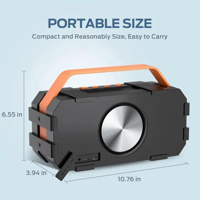 ^^ IPX6 WATERPROOF IPX6 Waterproof makes this wireless speaker suitable for outdoor activities. Take this waterproof speaker to your cruise ship, riding, boating, or party. A good choice for your moments of relaxation, no worries about weather and outdoor condition, keep the music on your way. ^^ EASY CONNECTION To the up-to-date Bluetooth 5.3 technology and the latest Bluetooth ATS chip, connecting over Bluetooth can be done within seconds to iPhones, iPad, Smartphones, Tablets, and other Bluetooth-enabled devices. It can ensure the most perfect sound quality transmission in a barrier-free environment, and guarantee no distortion and no delay in playback.