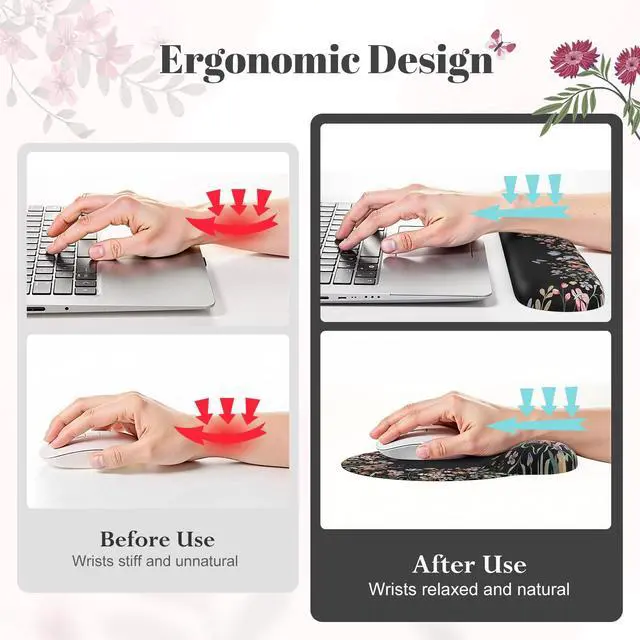 Ergonomic Design: Soft Gel padding and memory foam keep your wrists in a comfortable position while using the keyboard and mouse.