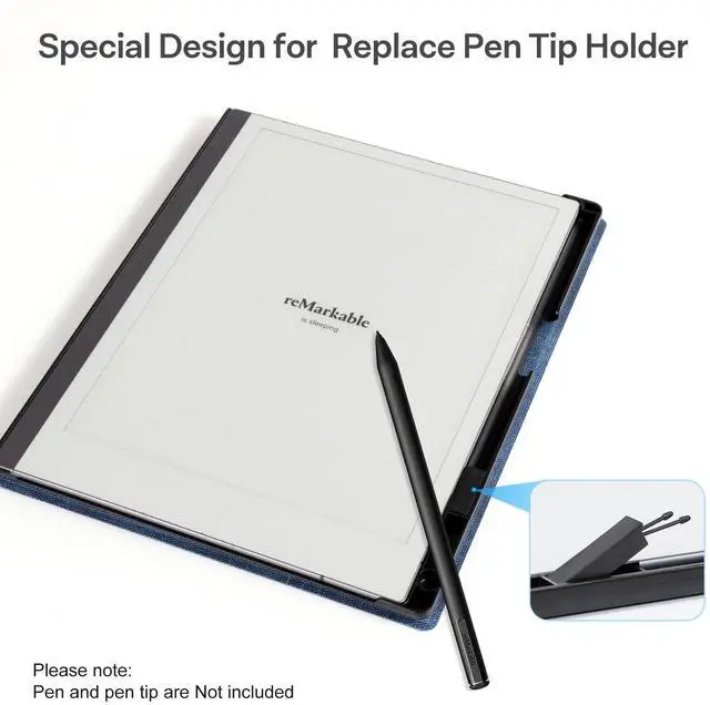 FITPerfect cutout and shape, specially designed for Remarkable 2 Paper Tablet 10.3" 2020 Released with built-In pen holder and replacement pen tip holder. ^^ PROTECTIVEThe built-in Magnetic Support Closure feature ensures your tablet is shielded against accidental drops, dust, and scratches. ^^ MATERIALThe exterior is composed of premium waterproof PU leather while the interior features an anti-slip material, and 100% PC case that ensures durability. ^^ LIGHTWEIGHTThe case gives maximum protection to your device without adding extra bulk, making it travel-friendly. It's the perfect choice for your daily using or travels.