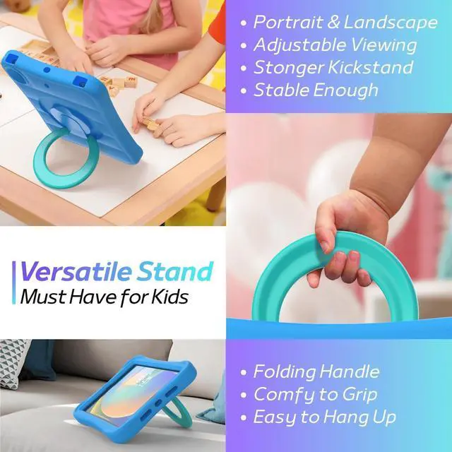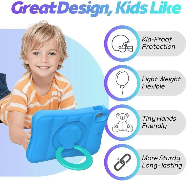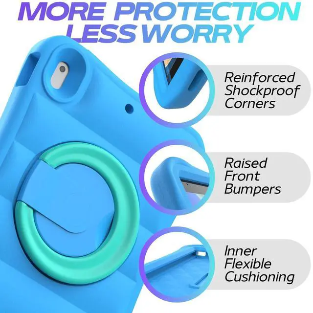 PLEASE FIT CORRECT IPAD DEVICE - This case can ONLY FIT the iPad 9th generation 10.2 inch (Model: A2602 A2603 A2604 A2605) / iPad 8th generation 10.2 '' (Model: A2428 A2429 A2430 A2270) / iPad 7th generation 10.2 in (Model: A2197 A2200 A2198). PLEASE CHECK THE MODEAL NAME OF YOUR IPAD CAREFULLY before purchase ^^ THE CASE MAKES KIDS LIKE - The case is kid-proof, featuring a friendly outline suitable for tiny hands. Made of high-performance, light weight and soft material, it is extremely comfortable to use. The versatile stand - handle is a must-have for children. Moreover, it is incredibly robust for long-lasting use ^^ ULTIMATE FLEXIBLE PROTECTION - The rugged case provides better protection with reinforced corners, additional front bumpers and inner soft cushioning, which is made of highly elastic EVA foam. It is capable of absorbing more impact and shock, protecting kids iPad from drops ^^ VERSATILE STAND HANDLE - Offering landscape, portrait and multiple viewing angles, the kickstand can easily free kids tiny hands. It is stable enough on several uneven surfaces, which is a challenge for most other stands. Open it to serve as a comfortable handle for gripping and carrying ^^ STURDY AND COMFY FOR USE - Well crafted with high-performance materials and reinforced construction. The case is very easy to assemble or remove. It has precise cut-outs for buttons, ports and cameras, enabling you to access all features with ease.