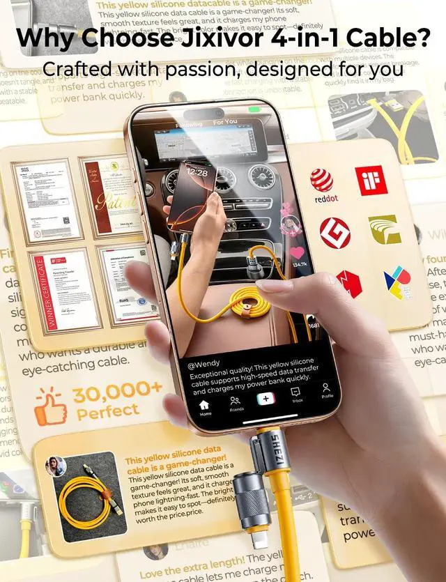 USB C charger can bear a tensile force of up to 25KG, as if it has endless power. Thanks to its top-notch quality, it still remains in perfect condition after 20 years of use ^^ CarPlay & Android Auto SupportThe Jixivor 4 in 1 fast charging cable supports CarPlay & Android Auto, charging and navigating at the same time. No matter what devices your family or friends in the car are using, we charge it all. Make life more convenient