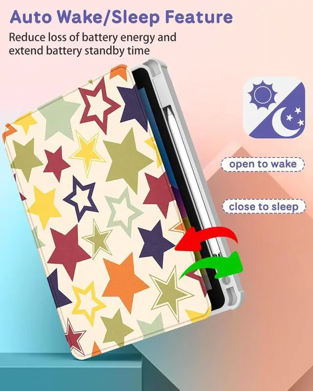 Auto Sleep/Wake: Built-in magnetic strip, this for iPad 10th case 10.9 inch with the smart funtion of auto sleep/wake, no wasting the power energy and extend your tablet standby time ^^ 360