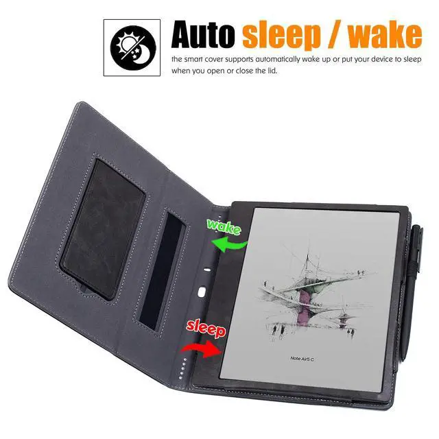 Perfectly compatibleDesigned exclusively to fit your 10.3" Onyx Boox Note Air 5 C Tablet Paper (2025) / Note Air 4 C (2024) & Note Air 3 B/W & Note Air 3 C (2023). will not fit other Boox Tablet ePaper. ^^ with Auto Sleep/Wakethe Smart Cover supports automatically wake up or put your device to sleep when you open or close the lid, preserving battery while also keeping notes private. ^^ Multiple Viewing Anglesable to set up multiple horizontal stand angles, giving you the comfortable angles to drawing/typing and viewing. Built-in Hand Strap, Elastic Hand strap allows to read with one hand easier and more comfortable.