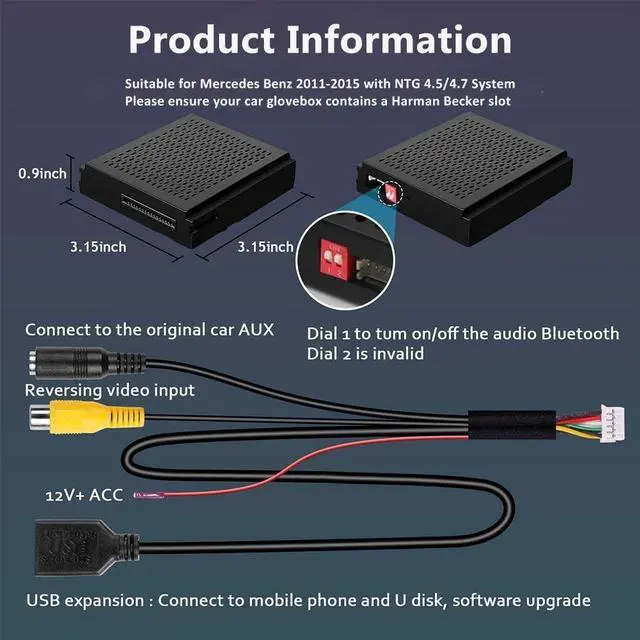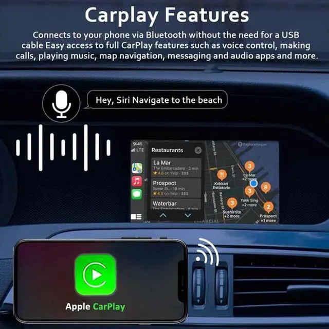 CarPlay/Android Auto Wireless: For Mercedes Benz Wireless Adapter offers you an intelligent and safe driving experience. Simply connect your phone via Bluetooth to answer and make calls, navigate, play music, and more, all through voice control or existing buttons on your car while driving.