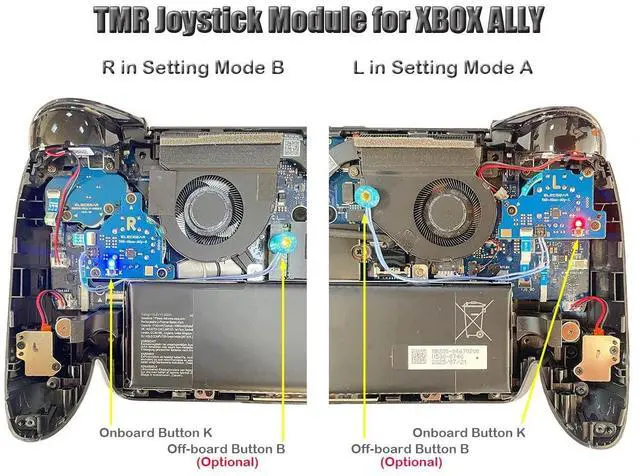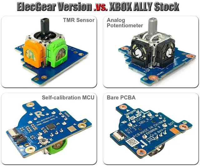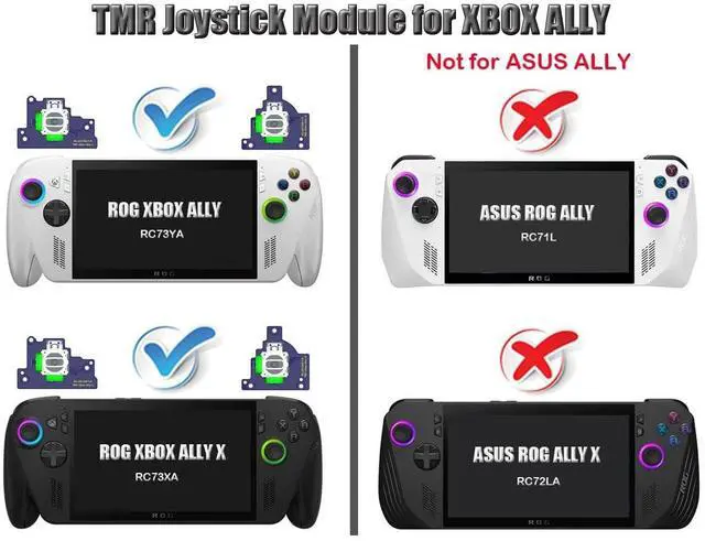 [TMR Joystick works with Xbox Ally] This joystick PCB module is compatible with Xbox ROG Ally RC73YA and Ally X RC73XA laptops (Not for ASUS Ally). It directly replaces the official left and right control stick assemblies. With the electromagnetic TMR hall stick sensors inside, the unit delivers higher sensitivity and accuracy. Say goodbye to drift, and enjoy smoother control and a longer lifespan ^^ [Self-calibration Onboard] This Pro edition features with high speed MCU calibration circuit. Users can calibrate it independently. It is more accurate and intuitive than official calibration. The center point can be finely set, and the outer range can be customized via a tester web link.