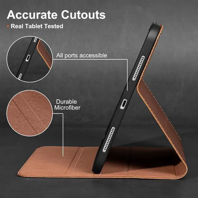 Generation 2021(Model number: A2567, A2568, A2569), Accurate cutouts allow easy access to all ports and features. Not compatible with any other iPad model. ^^ [PREMIUM GENUINE LEATHER] - GEXMIL iPad leather cases are precision made of top layer genuine cowhide leather. These hides are selected for quality, strength, character and grain. Besides its stylish look and natural touch, each Gexmil case is unique in the world as the color and pattern of each leather is special. This is where the charm of the leather case ^^ [MATERIAL&CRAFT] - Exterior is genuine leather protecting camera and tablet body with inner super-fibre lining protecting screen and TPU full package soft inner shell. Full access to all features (Cameras, Speaker, Ports and Buttons); each cutout is tested with relevant tablet before package to make sure working perfectly ^^ [COMPLETE FUNCTIONS] - Support auto wake/sleep; Cover features multi-angles stand mode. Shockproof protective lear case for accident falling, anti slip and anti fingerprint. Honeycomb designed TPU shell accelerating heat dissipation, durable for wrestling. ^^ [LEATHER PROTECTION] - Due to the characteristics of leather, do not contact with water for a long time, and do not touch items with temperature over 60 degrees, which helps to ensure the long-term property of leather.