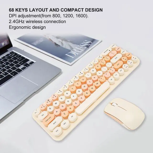 ROUND KEYCAPS: The keyboard adopts 68 keys layout and compact design. And the cute round keycaps can be easily detached for cleaning. The mouse support DPI adjustment(from 800, 1200, 1600).