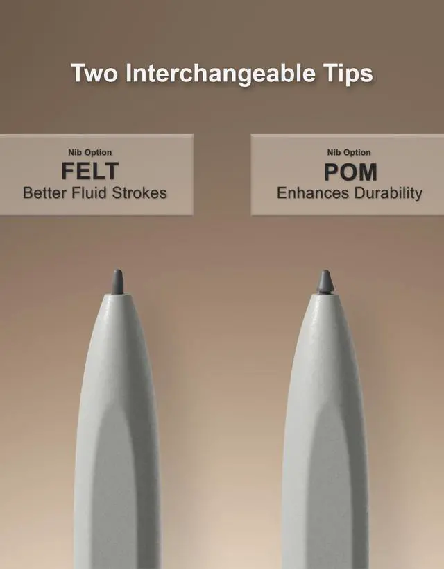 DUAL TIP OPTIONS: Includes 2 felt tips for a natural, paper-like feel and 3 durable POM tips for extended longevity, ensuring a