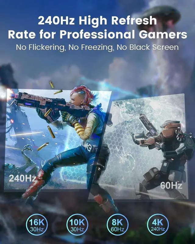 It also works seamlessly with popular gaming graphics cards like RTX 5090/5080/5070Ti/5070/4090/4080/4070Ti/3090/3080 Ti/3070, AMD 7900XTX/7900 XT, and more. Connect to HDTVs, monitors, displays, and gaming graphics cards with DisplayPort for crystal-clear audio and HD video. ^^ Buy with ConfidenceWe offer a 5-year warranty for this DisplayPort 2.1 cord. If you have any questions, please feel free to contact us and we will provide you with professional technical support.