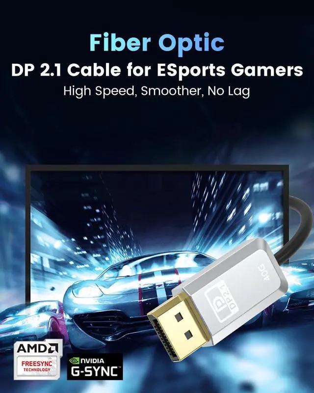 Fiber Optic DisplayPort Cable 2.1T his DisplayPort 2.1 is an optical fiber version. Compared with copper cable on the market, fiber optics can transmit over long distances without loss. It is also resistant to electromagnetic interference, so you no longer have to worry about blur, distortion, and delay. Stable, smooth, and high-speed data transmission makes you win the game. It is fully compatible with FreeSync and G-Sync. ^^ Immersive Gaming ExperienceOur DisplayPort to DisplayPort 2.1 cable supports 3D, HDR, HBR20, HDCP 2.2, Dynamic HDR, DSC 1.2 a, UHBR10, 3D stereo imaging technology, Auto Low Latency Mode (ALLM) and Variable Refresh Rate (VRR), 32-bit/1536kHz audio channel transmission allows you to finely detect the dynamics of enemies, making it the best choice for enthusiast e-sports players.