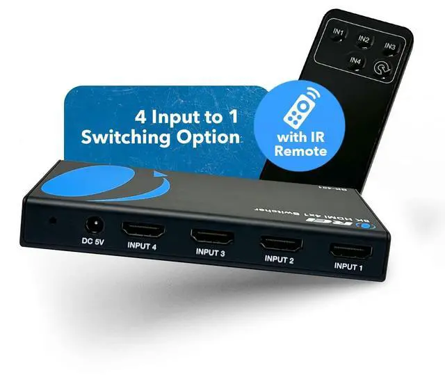 Includes: BK-401 HDMI Switcher, 5V/1A Power Supply, Manual