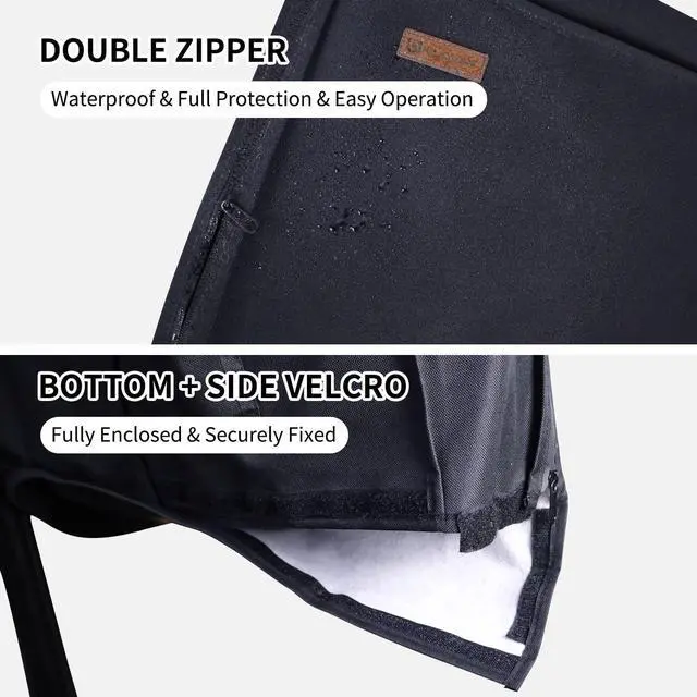 ^^ Enhanced Rain Protection DesignThe outdoor TV cover features a large triangular cover and a three-door design, providing a larger rain-shielding area. It effectively prevents rainwater from seeping into the TV. The Velcro closure is suitable for all kinds of TV mounts, ensuring a perfect fit for the TV cover. ^^ Complete Waterproofing FeaturesTo protect the TV from wet environments, the TV cover is equipped with waterproof zippers on both sides. The bottom and sides are closed and waterproof with Velcro. This design effectively blocks rain and water splashes, ensuring a dry environment for the TV without any damage.