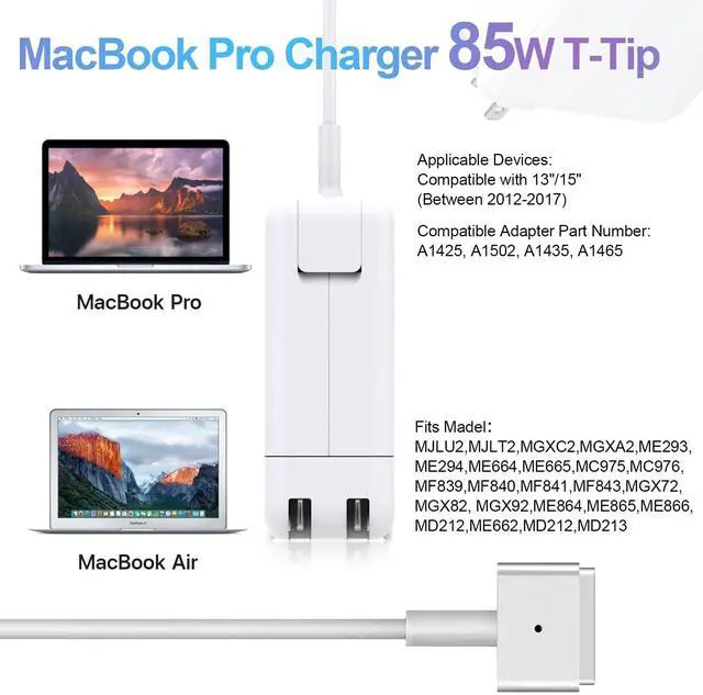 Note: This is the second generation of power adapter, not the first generation. Knowing which specific Laptop model you have is important. ^^ Compatible with Mac Book Pro 13 inch-15 inch Retina - Mac Book Pro (15 inch, Mid 2015), Mac Book Pro (15 inch, Mid 2014); Mac Book Pro (15 inch, 2013), Mac Book Pro (15 inch, Mid 2012), Mac Book Pro (13 inch, Early 2015), Mac Book Pro (13 inch, Mid 2014), Mac Book Pro (13 inch, 2013), Mac Book Pro (13 inch, Late 2012) ^^ Compatible with Mac Air 11inches 13.3 inches and 15ches - A1502, A1344, A1465, A1502, A1425, A1435, A1466, A1398, A1424, ME293, ME294, ME664, ME665, MC975, MC976, MD506, MJLU2, MJLT2, MGXC2, MGXA2. ^^ LED Light - An amber light lets you know that your notebook is charging, while a green light tells you that you have a full charge ^^: ( > )