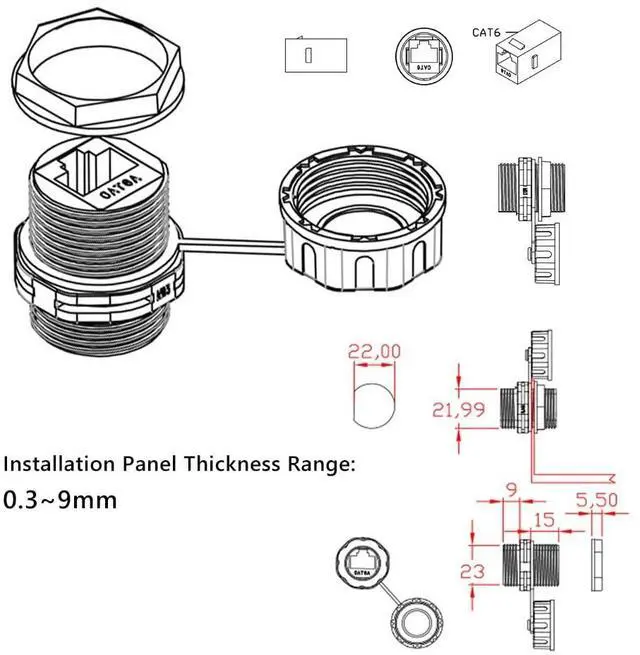 hole: 24mmStable Connection High Speed TransmissionEnables use or extension of RJ45 ethernet connections in wet or dusty environments. IP68 rated. Easy to assemble and installProvides excellent connectivity and signal qualityUsed for PA66 nylon native environmental protection material, and UV resistance, make it anti-aging and long service life. Threaded connection, safe and reliable, shock, vibration, tensile, resistance to electromagnetic interference protection.