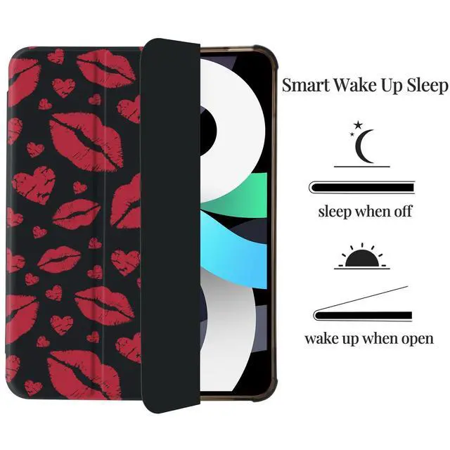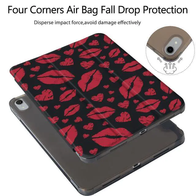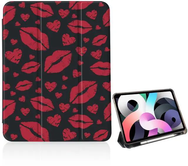 OFQKOAKS Red Lips Heart Case for iPad 11 Inch (A16) 11th 2025/iPad 10.9 Inch 10th Gen 2022,[Pencil Holder+Auto Sleep/Wake],Slim Trifold Stand Protective Cover with Soft TPU Back,Black