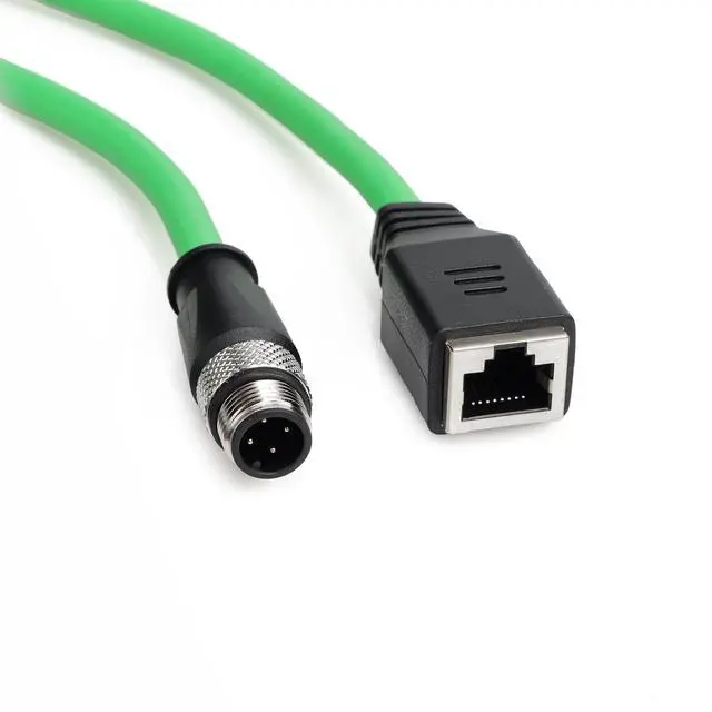 M12 4 Pin D Code Male to RJ45 Female Connector Cable Ethernet M12 Connector Profinet Cable M12 Connector 4 pin D code Male to Female RJ45 Industrial Ethernet Connector. ^^ Oxygen-free copper core, Tensile cotton rope, Shielding aluminum foil, High density pure copper braid shield, Environmental protection PVC outer cover. ^^ The Cable M12 to RJ45 is commonly used in industrial automation, networking, and communication systems where devices with M12 and RJ45 connections need to communicate with each other. It enables the transfer of data or signals between devices using these different connector types.