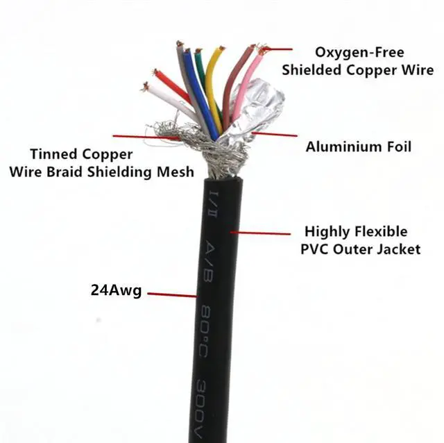 M12 A Code 8 pin Male to Open Flying Leads Industrial Sensor Connector Cable Waterproof Shielded Aviation Signal Cable for I/O Fieldbus Module Device Network