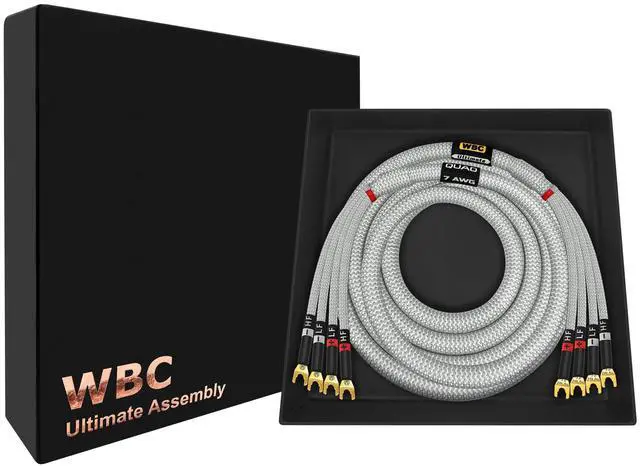 The high-end packaging, makes these a great gift for any Audiophile or Music Lover who will appreciate handcrafted, high quality audio cabling. The braided Tweed cloth jacket and embroidered labeling will compliment your high-end gear quite tastefully; this is truly The Ultimate speaker cable. ^^ At WBC we only use the highest-grade connectors for these audiophile cable assemblies. Eminence 3 micron, 24K Gold plated, audiophile-grade, multi-spade connectors, (compatible with 8mm and 6mm binding posts), provide superior abrasion & corrosion resistance and unrivalled performance. The spade plugs are specially reinforced to support heavy gauge cables (thicker profile).