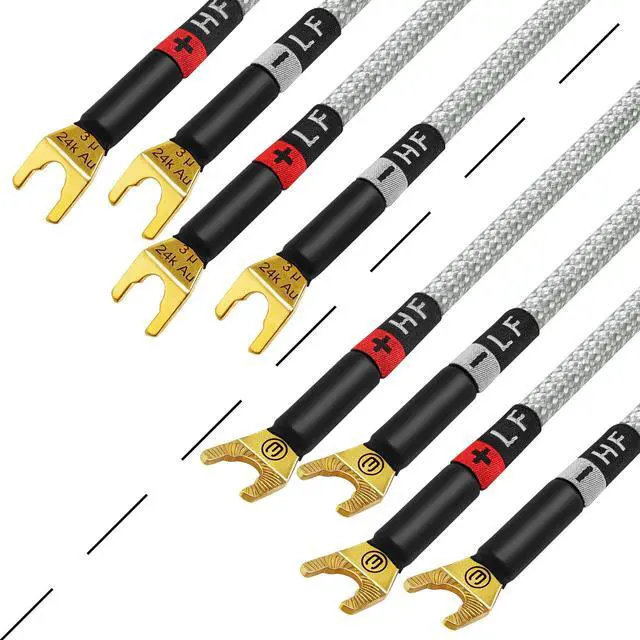 ^^ All our bespoke cables are professionally soldered using WORLDS BEST CABLES proprietary 4% silver solder blend & a nitrogen-assisted soldering process unique to us, exceeding industry standards, improves integrity of solder joints over traditional methods. The tweed jacket is hand applied while the embroidered labeling is also hand stitched into place resulting in a truly handcrafted cable. The four fabric connector cover pouches and the gift box are reusable. ^^ This sale is for a single Bi- Amp speaker cable for the center channel and is 8 Foot long. These are custom made cables lovingly assembled by WORLDS BEST CABLES, we offer the largest array of custom-built cables in the market, we carry all the major cable and connector brands.