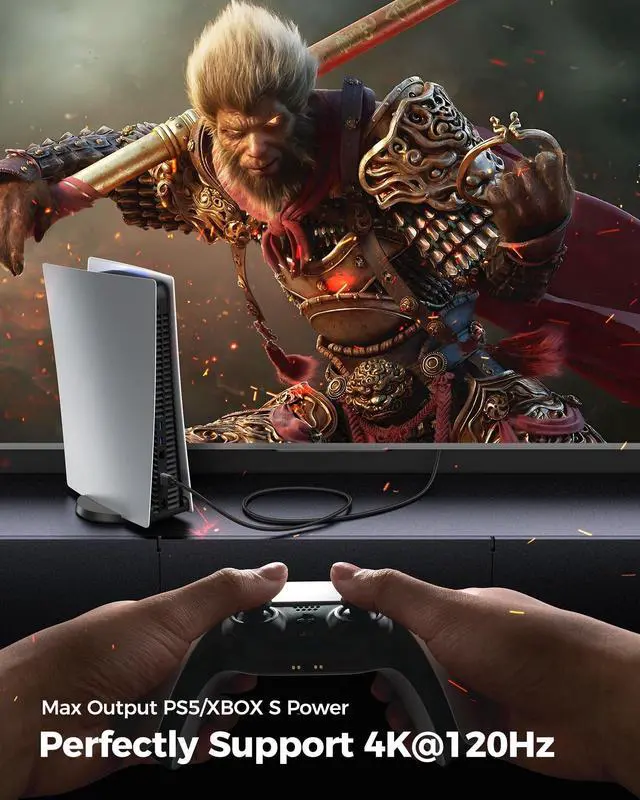 HDMI 2.1 -48Gbps BandwidthUnleash the full potential of your devices with lightning-fast data transfer rates, ensuring seamless connectivity for all your high-definition needs ^^ 120Hz/144Hz Gaming ExcellenceElevate your gaming experience with smooth 4K@120Hz gameplay for PS5 and Xbox, and ultra-responsive 4K@144Hz for PC. Whether youre pushing your console or PC to the limit, enjoy unparalleled performance across all platforms(Requires game to support 4K@120Hz) ^^ Exclusive "E-Braid" TechnologyExperience unprecedented durability with our unique double-layer fishnet winding and nylon braiding techniques. Copper cores and ferrite magnetic beads ensure uninterrupted signals, eliminating black screens and flickering ^^ Next-Level Resolution SupportDive into the future with support for mind-blowing resolutions, including 10K 8K@60Hz, 12-bit; 5K@120Hz/90Hz, 12-bit; 4K@144Hz/120Hz, 12-bit; and 2K@240Hz/165Hz ^^ 120Hz/144Hz Gaming ExcellenceElevate your gaming experience with smooth 4K@120Hz gameplay for PS5, and ultra-responsive 4K@144Hz for PC.